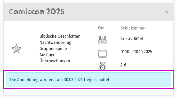 Freischaltedatum für Freizeiten #14